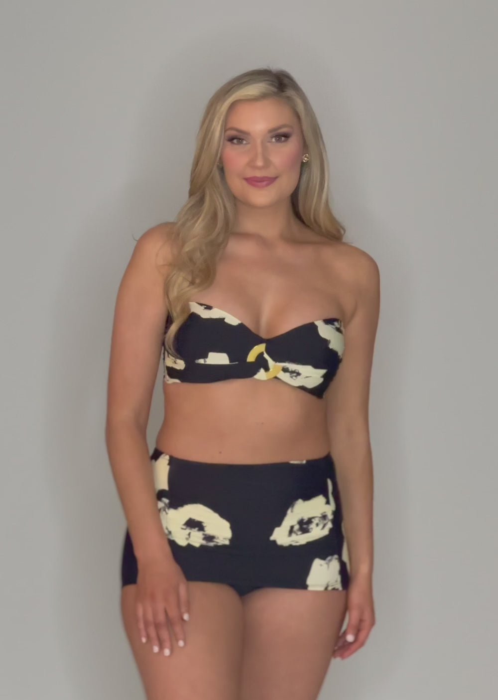 A Tara Grinna classic, The Twist Front Bandeau is designed soft moulded cups that make this top the the best fitting bandeau we have ever made! This bandeau top features gold hardware and provides maximum support for larger cup sizes while still maintaining its shape and staying shapely throughout the day.