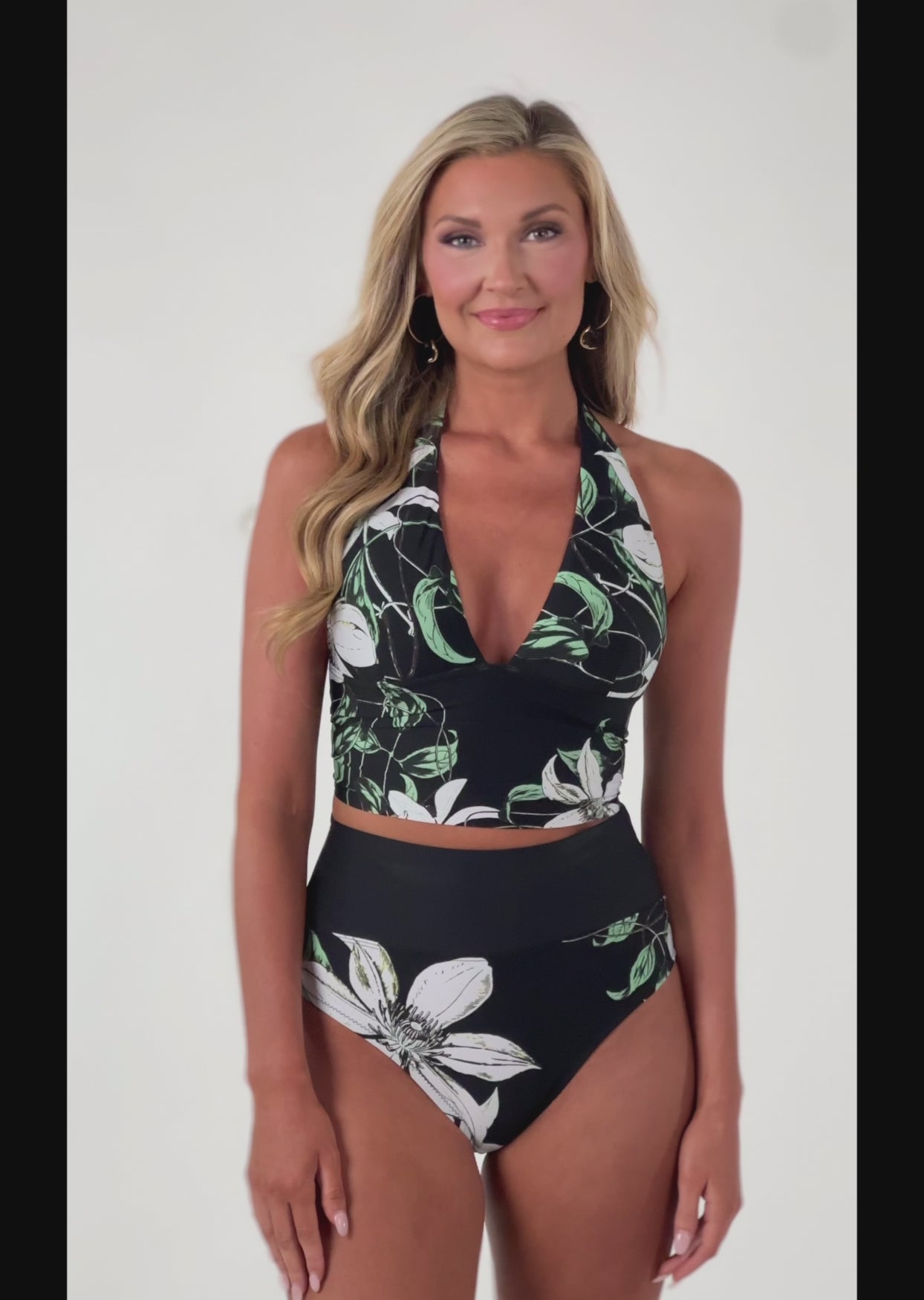 The ultra-high waist bikini bottom is Tara Grinna's #1 favorite bottom style of women for several years. This pant has a moderate leg height and full back coverage, making it the perfect choice for any woman who wants to feel comfortable and confident in her swimwear.