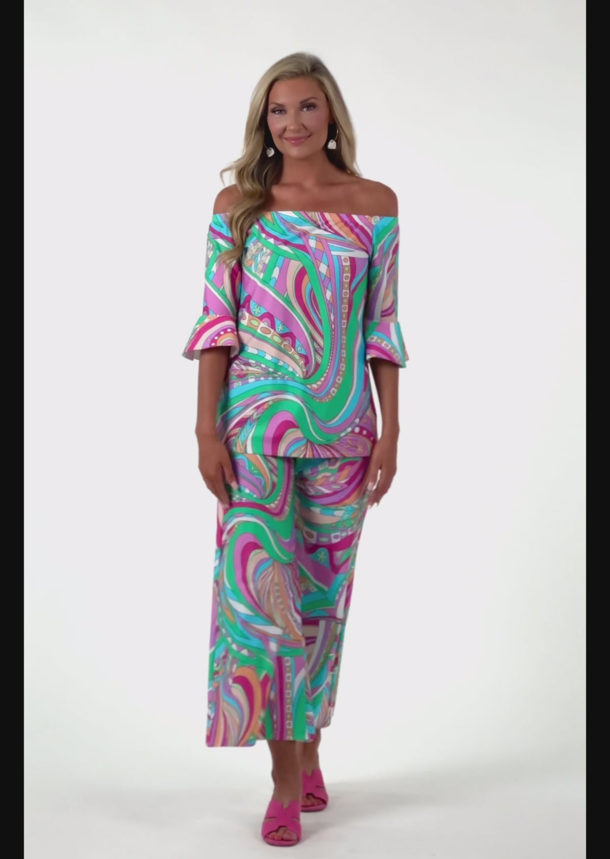 Introducing the perfect versatile resort palazzo pant that can be worn poolside for a casual look or paired with the matching flounce top and our signature Delaney Vamp Block heel for an evening out.