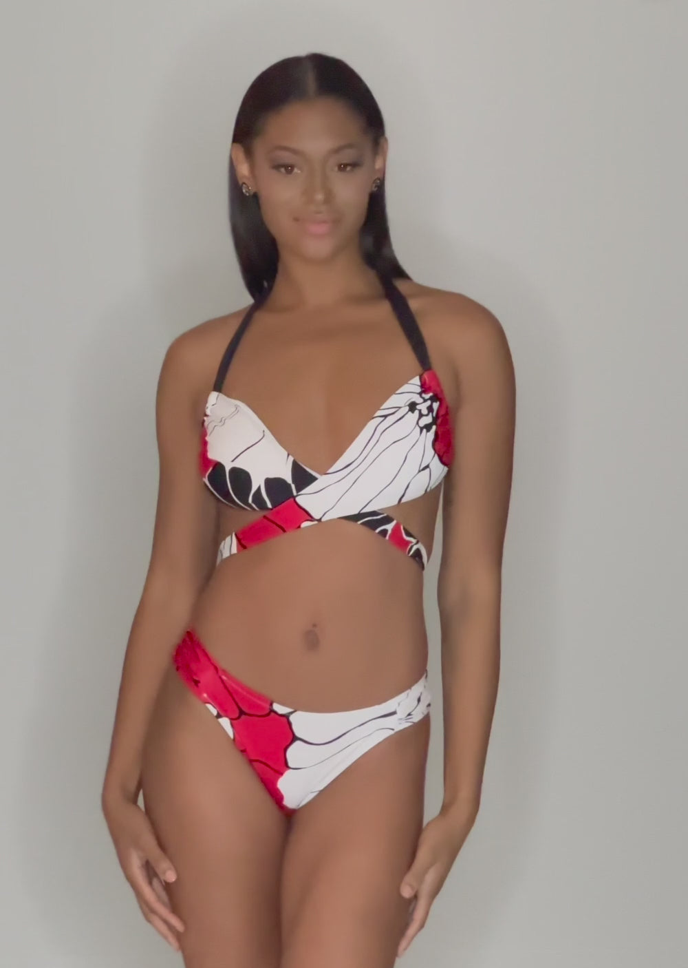 Our Spring and Summer 2023 Swim and Resort Wear Collection presents a bold and vibrant black, white, and red floral print, inspired by the picturesque blooms of La Spezia, Italy.