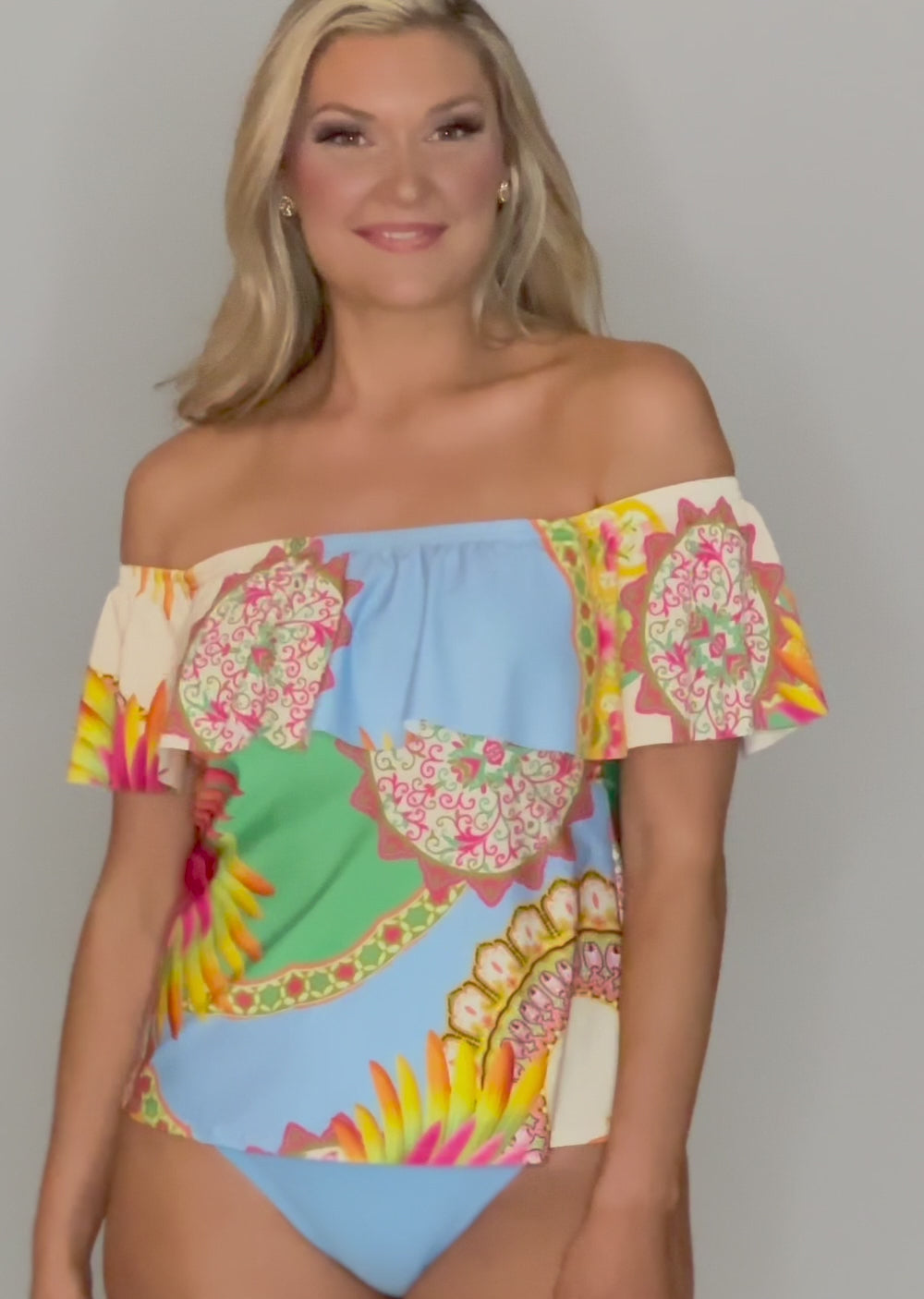At Tara Grinna, we pride ourselves on creating unique and exclusive soft cup bra constructions that fit a range of cup sizes from A-DD, providing optimal support and coverage for any activity. The tankini length is generous enough to amply cover the top of all higher waist Tara Grinna bottoms, giving you the coverage of a one-piece with the mix and match flexibility of a two-piece.
