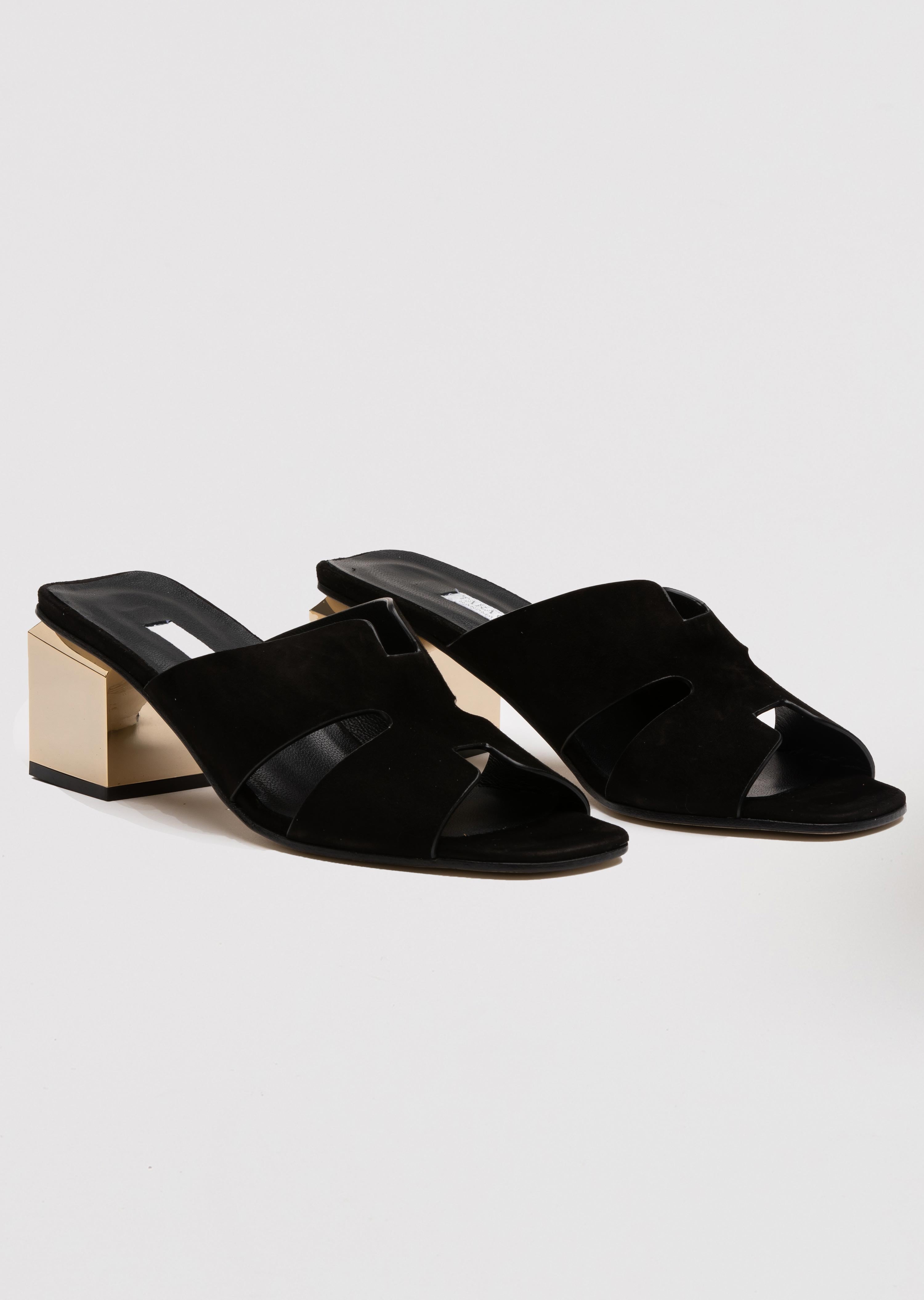 All leather with suede upper and gold block heel. This vamp offers comfort in a slightly higher heel but gives sturdiness to the wearer. Hand Made by Italian Artisan and always tried and tested by Tara personally!